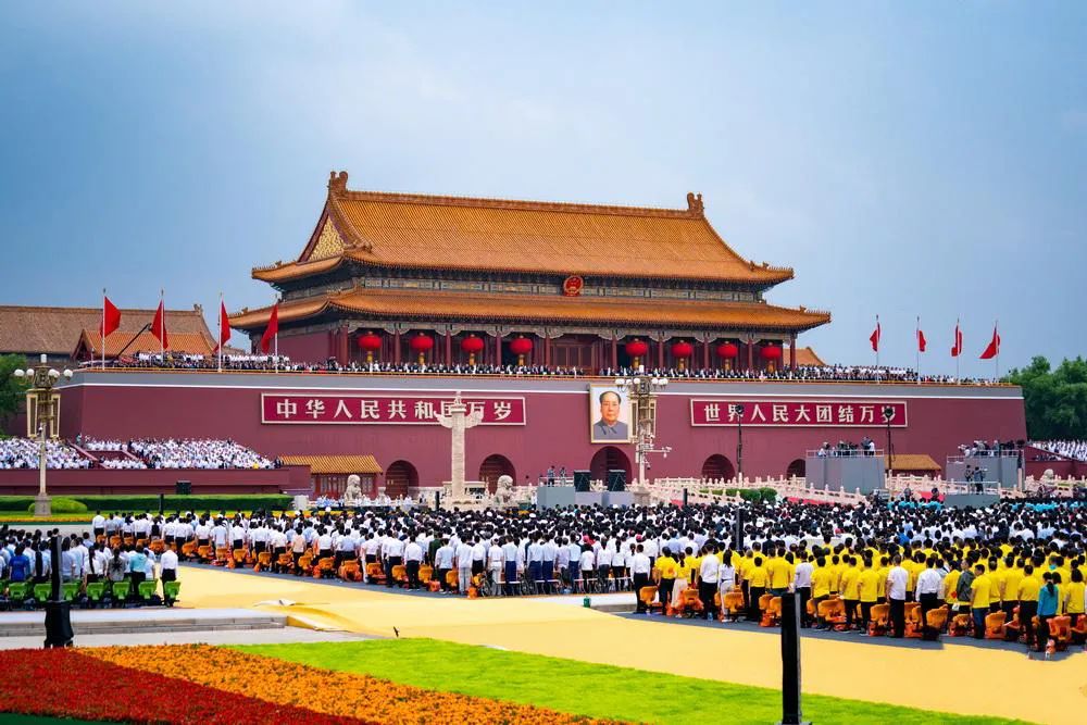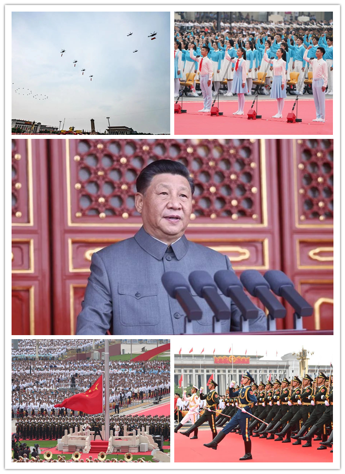 8時(shí)整,大會(huì)開始。戰(zhàn)鷹飛過天安門廣場(chǎng),最美的祝福送給黨!國(guó)旗護(hù)衛(wèi)隊(duì)器宇軒昂、步伐堅(jiān)定,從人民英雄紀(jì)念碑到國(guó)旗桿220米的距離,由齊步、正步、齊步各100步完成;這條路不長(zhǎng)、剛好走了100步,這條路很長(zhǎng)、足足走了100年!會(huì)場(chǎng)內(nèi)外萬千中華兒女注目著五星紅旗冉冉升起,莊嚴(yán)的外表難掩內(nèi)心無比的激動(dòng)。緊接著,共青團(tuán)員和少先隊(duì)員代表們集體致獻(xiàn)詞,滿懷深情表達(dá)了對(duì)黨百年華誕的真摯祝福。接下來,大會(huì)進(jìn)行最為重要的議程,習(xí)近平總書記發(fā)表重要講話!當(dāng)總書記講到“中國(guó)人民也絕不允許任何外來勢(shì)力欺負(fù)、壓迫、奴役我們,誰(shuí)妄想這樣干必將在14億多中國(guó)人民用血肉筑成的鋼鐵長(zhǎng)城面前碰的頭破血流”時(shí),集團(tuán)全體黨員心潮澎湃,會(huì)議室內(nèi)響起熱烈掌聲!