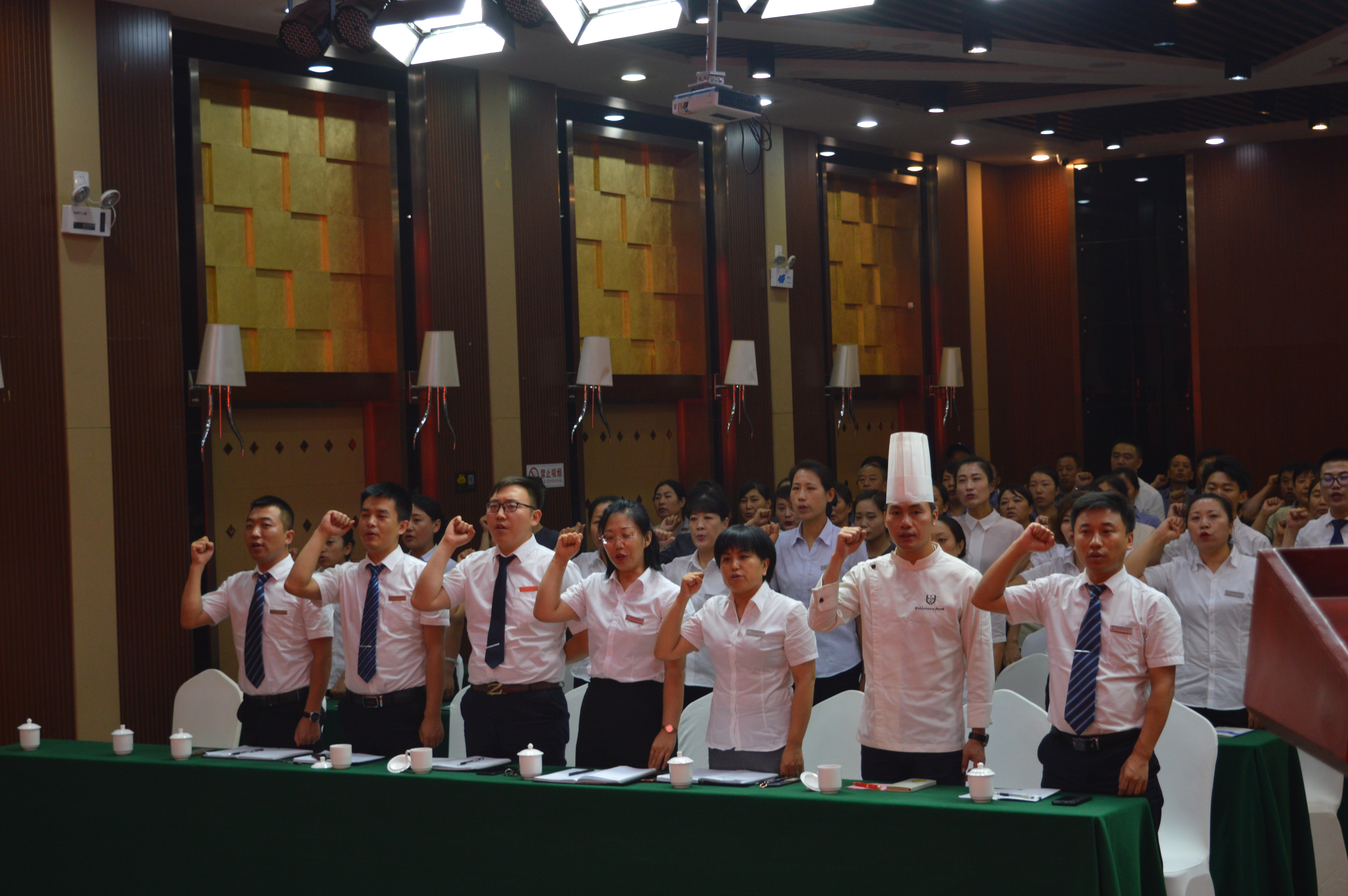 最后,全體人員齊誦星雅名都店訓(xùn),大會在整齊劃一、鏗鏘有力的聲浪下圓滿閉幕!同時,星雅酒店服務(wù)技能培訓(xùn)正式起航!