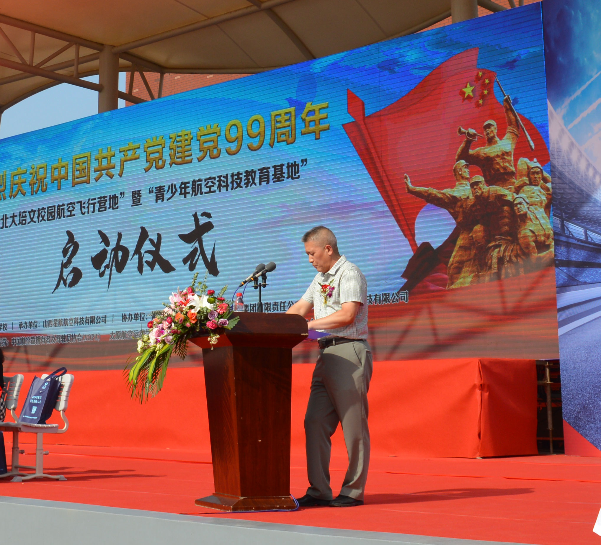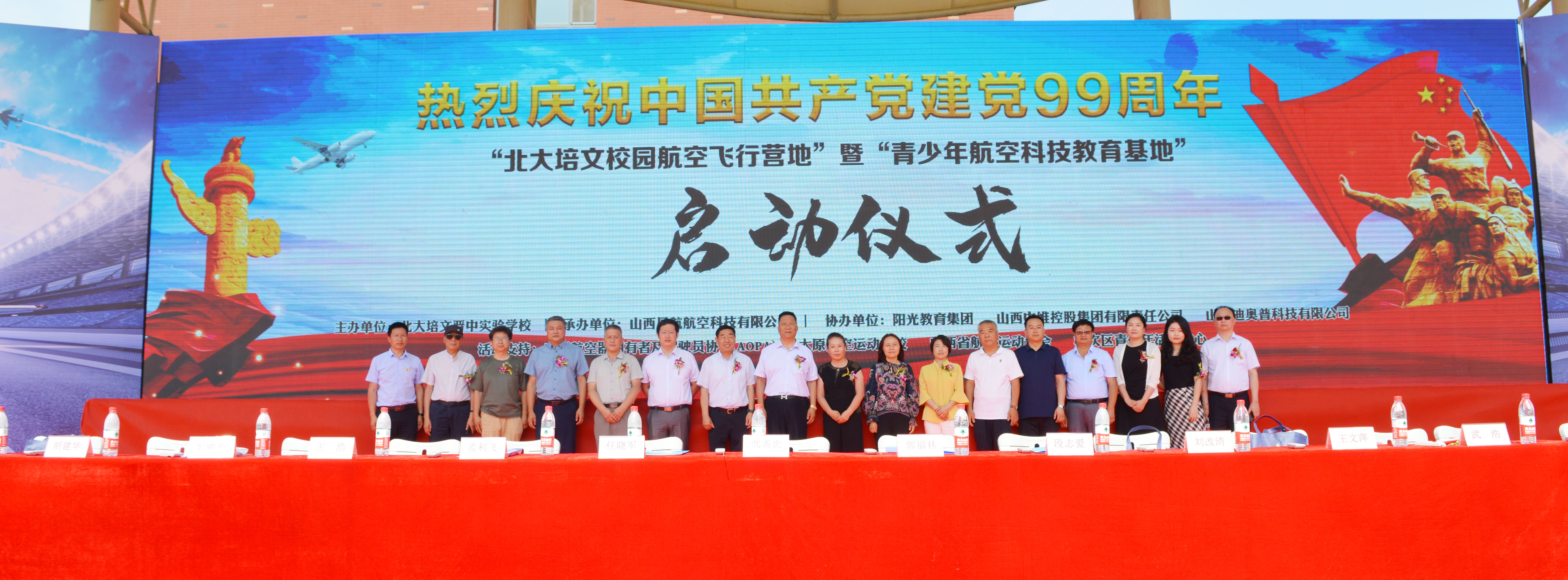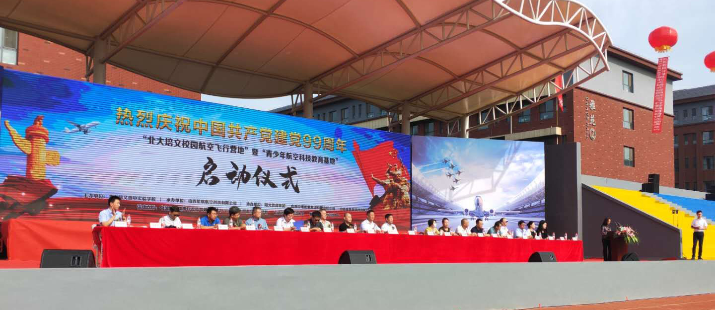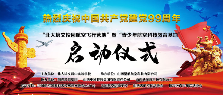 在中國(guó)共產(chǎn)黨誕辰99周年之際,為了進(jìn)一步培養(yǎng)青少年的航空愛(ài)國(guó)精神、全面推動(dòng)山西省航空特色教育發(fā)展,實(shí)現(xiàn)省通用航空產(chǎn)業(yè)的全鏈接。北大培文晉中實(shí)驗(yàn)學(xué)校于2020年7月1日上午八點(diǎn)隆重舉行了“校園航空飛行營(yíng)地”暨“青少年航空科技教育基地”啟動(dòng)儀式。