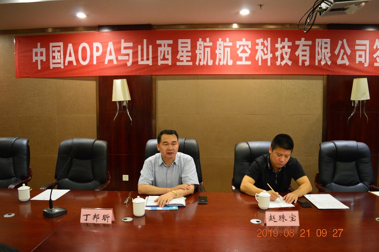 2019年8月21日,山西星航航空科技有限公司與中國(guó)航空器擁有者及駕駛員協(xié)會(huì)簽約儀式在星雅酒店五層會(huì)議室隆重舉行。參加此次簽約儀式的有中國(guó)航空器擁有者及駕駛員協(xié)會(huì)副秘書(shū)長(zhǎng)丁邦昕先生、教育事業(yè)部市場(chǎng)總監(jiān)趙珠寶先生、中維控股集團(tuán)總裁郭雅磊、山西星航航空科技有限公司總經(jīng)理單永平、副總經(jīng)理鄭全勝。
